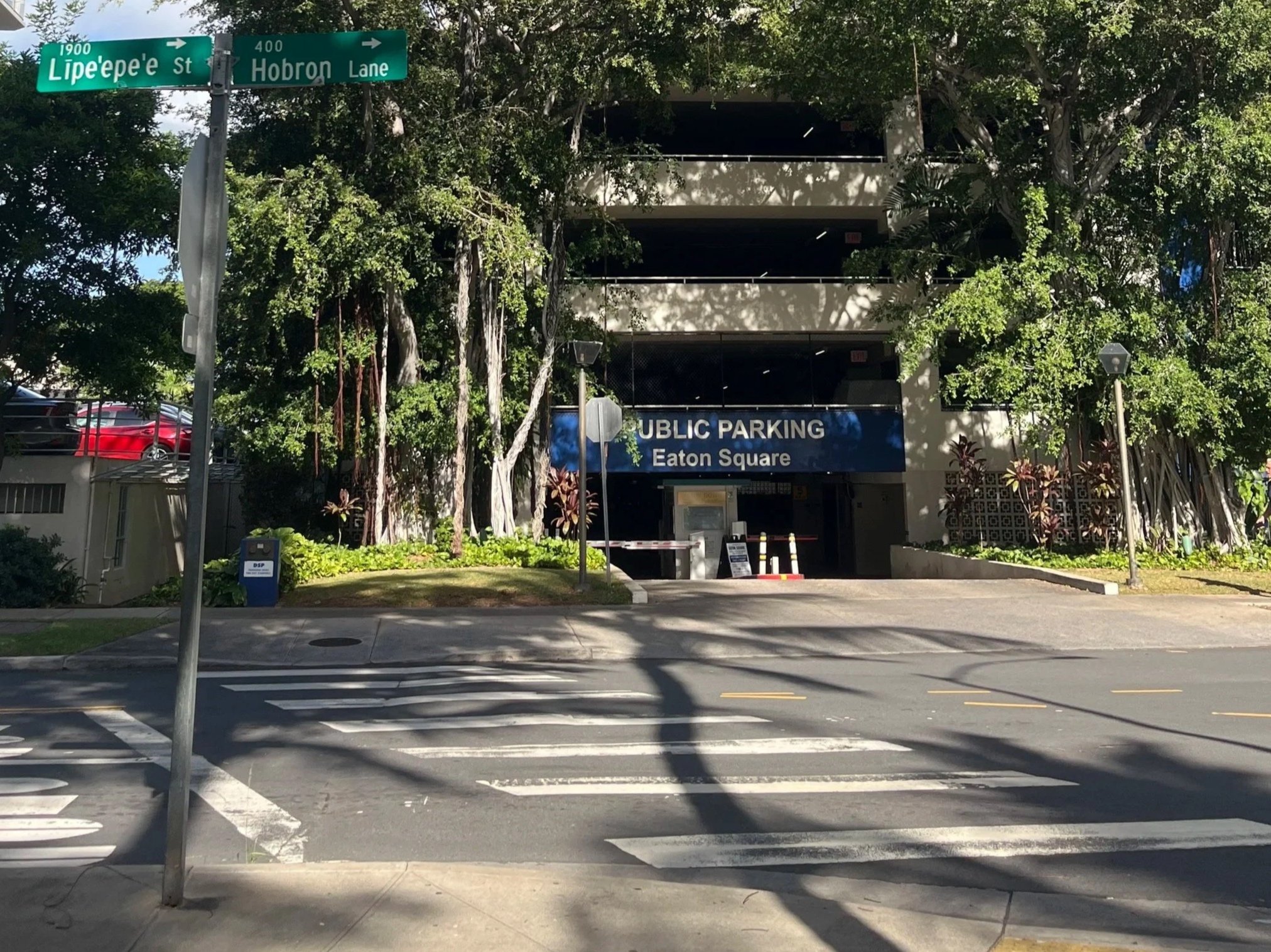 The parking garage is located on the corner of Lipe’epe’e and Hobron Lane